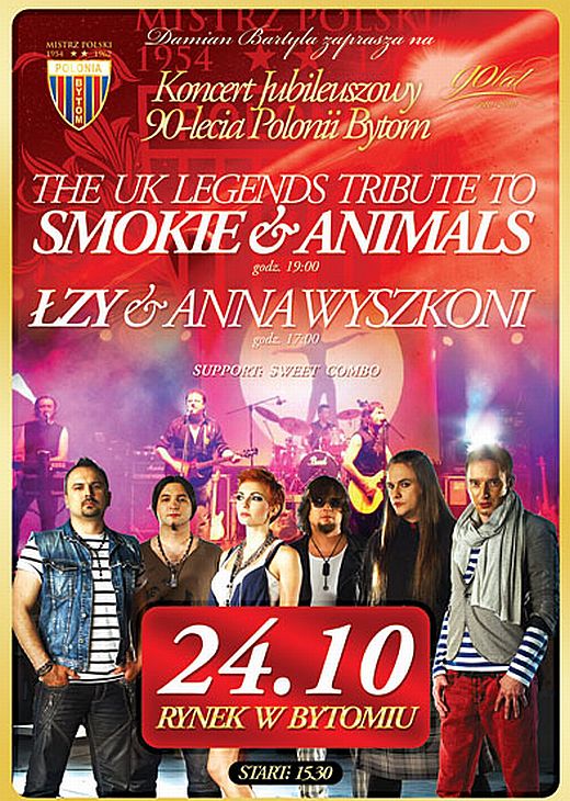 Prezes Polonii Bytom, Damian Bartyla zaprasza na Jubileuszowy Koncert z okazji 90-lecia klubu, którego głównym puntem jest występ... "The UK Legends Tribute To Smokie & Animals", natomiast polskim supportem będzie zespół Łzy z Anną Wyszkoni. Impreza odbędzie się 24 października na bytomskim Rynku, wstęp oczywiście darmowy, początek imprezy już o godzinie 15:30! Serdecznie wszystkich zapraszamy!
